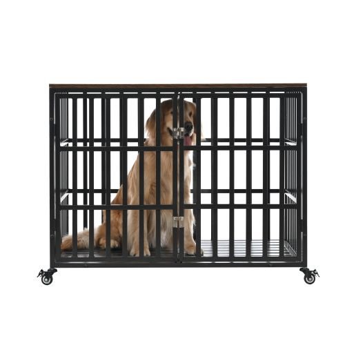 Home > 42" Heavy Duty Dog Crate for Large Medium Dogs, Furniture Style cage with 4 Lockable Wheels and 2 Locks