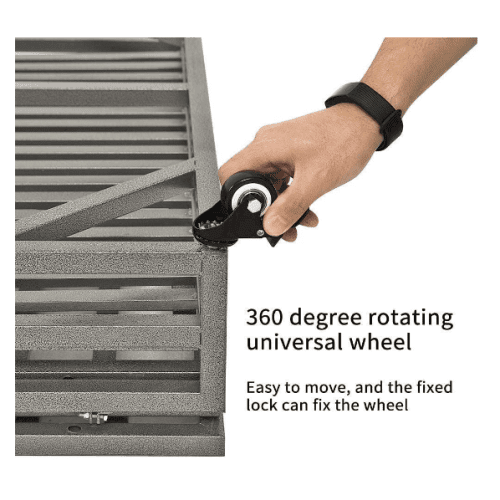 • Heavy duty frame: made from rust and corrosion-resistant steel,strong and durable, hard to be damaged,nontoxic finished surface keep your dog health and render excellent anti-rust ability, suitable for most medium and large dogs, two locks with the safety buckles to prevent the dogs from opening the door and escaping.• Two doors & locking casters design: The front door is suitable for pet in and out. Four 360 degree rotated locking casters can help you to move crate anywhere easily and lock the wheels to keep the crate in any place, four wheels are all lockable to prevent accidental movement.• Small Feeding door design: to help you feed the pet without open the front door, and once they come out, you have to spent a lot of energy to call him back.• Easy to assemble: All hardware pack included, just need to fit it with four wheels and some screw bolts, Just takes 10 minutes to complete. When you assemble the crate, Please do not make the screws tighten when you firstly connect the parts, after the construction correctly, then tighted all the screws.• Easy to clean:Removable (slide-out) plastic tray helps you to catch the fallen dog food and excrement, and helps you to wipe and clean easily.