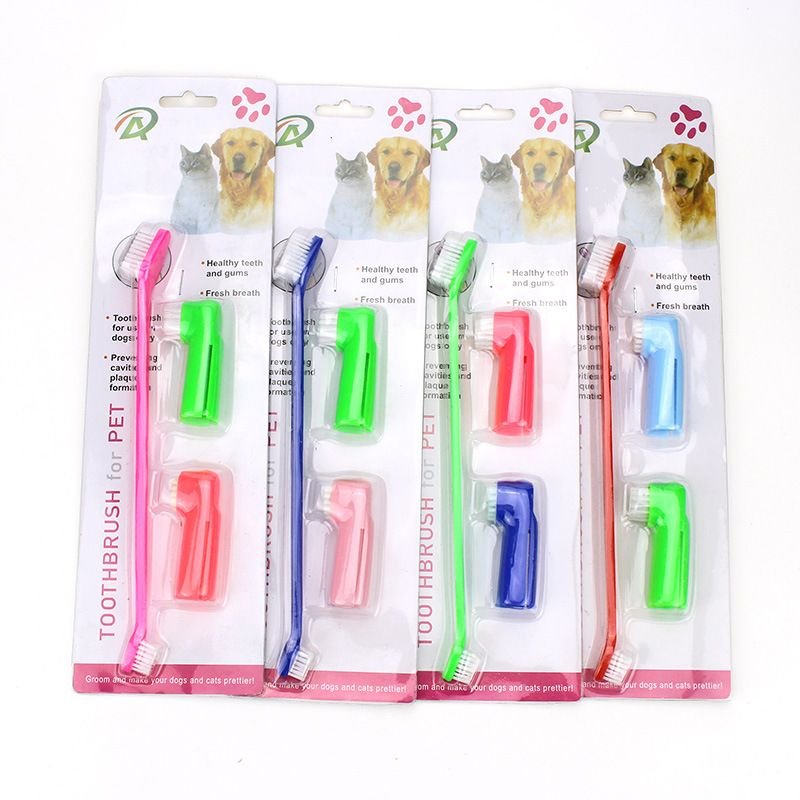 Home > Two Headed Dog Toothbrush Set Canine Dental Hygiene Brush with 2 Finger Brushes Soft Bristles