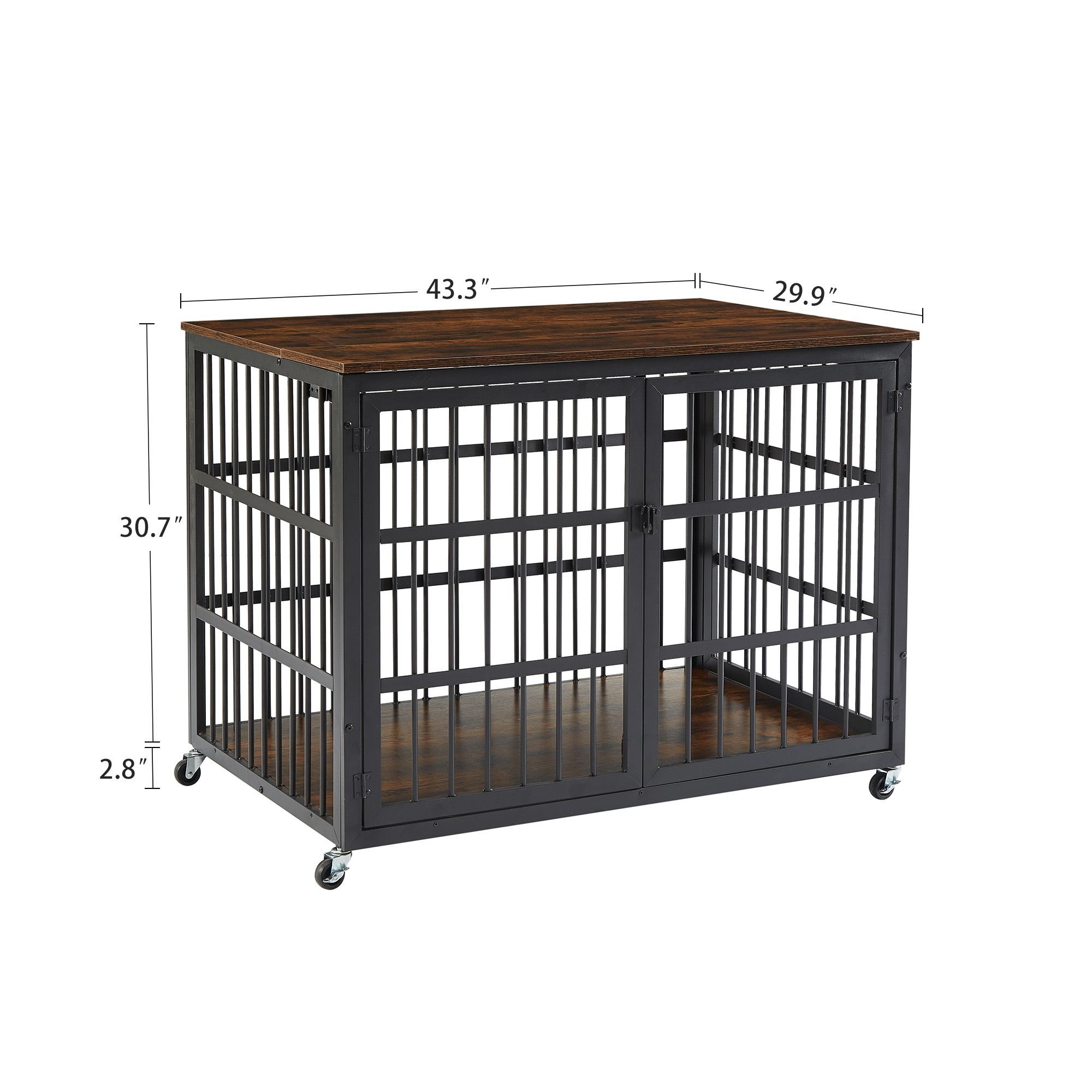 Product NameFurniture style dog crate wrought iron frame door with side openings, Grey, 43.3''W x 29.9''D x 33.5''H.